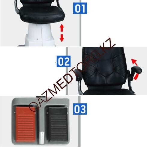 WZ-B үлгідегі тіркелген орындық, арқалығы мен көтеру механизмді, офтальмолог кабинеттері мен арнайы медициналық мекемелерге арналған. Бұл кәсіби жабдық көру бұзылыстарын диагностикалау және емдеуге сәйкес жасалған.