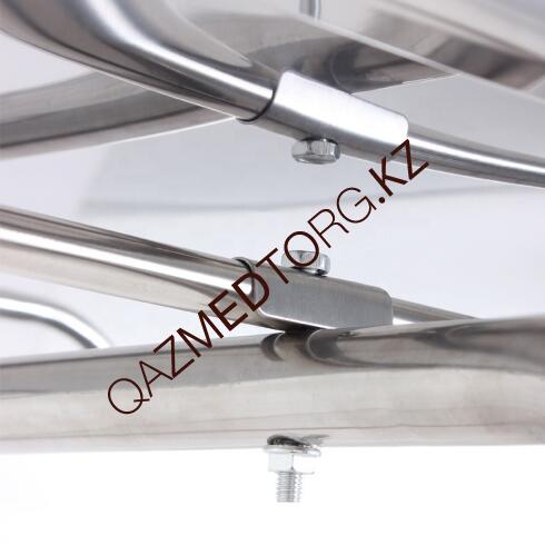 Стол оснащён хирургическим подносом со скруглёнными краями, который легко снимается для быстрой и удобной очистки. Каркас конструкции разборный, выполнен из усиленной нержавеющей стали, что гарантирует стабильность и надёжность. Для крепления используется съёмный стальной винт, обеспечивающий дополнительную жёсткость.